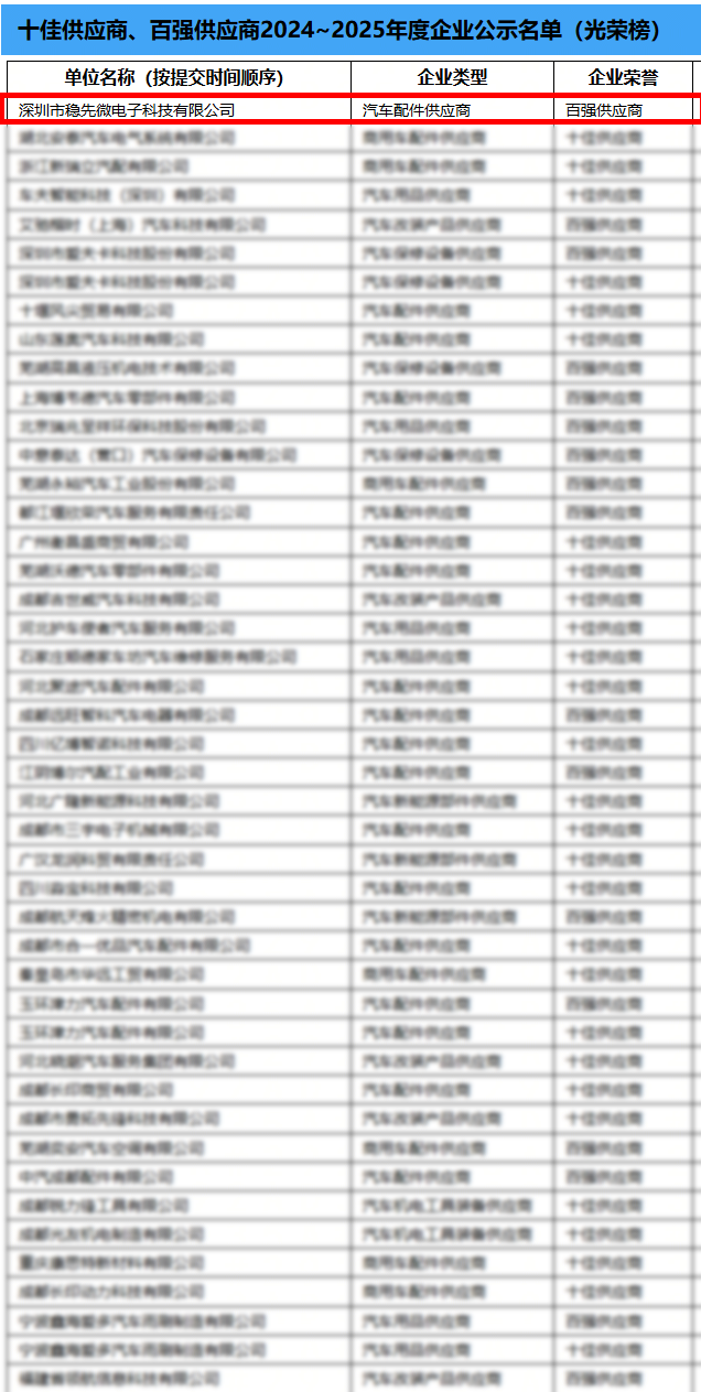 喜報(bào) | 熱烈祝賀穩(wěn)先微榮獲“2024全國(guó)汽車(chē)后市場(chǎng)百?gòu)?qiáng)供應(yīng)商”